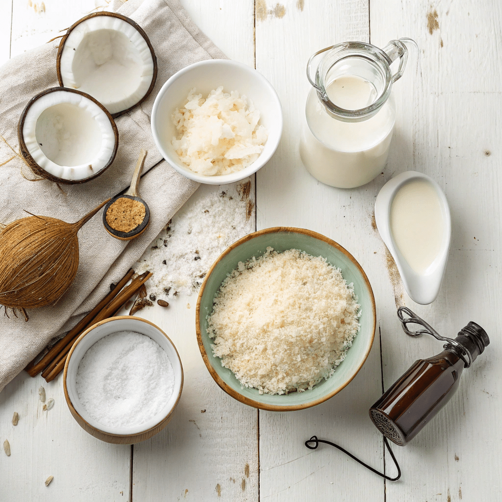 - 2½ cups grated coconut (fresh or unsweetened shredded works great)