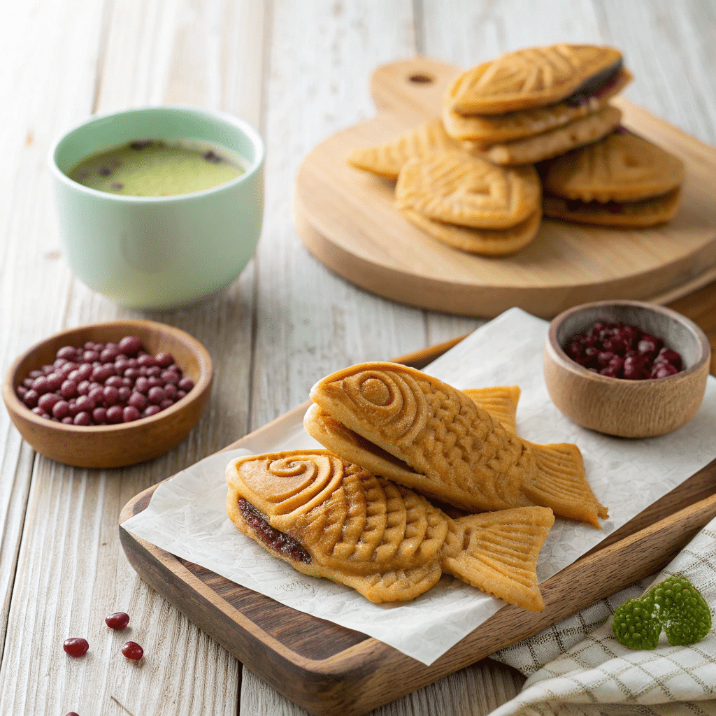 They’re part of Japanese street food culture, often sold warm and fresh off the griddle. Traditionally, they’re filled with sweet red bean paste (anko), but modern variations include custard, cheese, matcha cream, and chocolate.